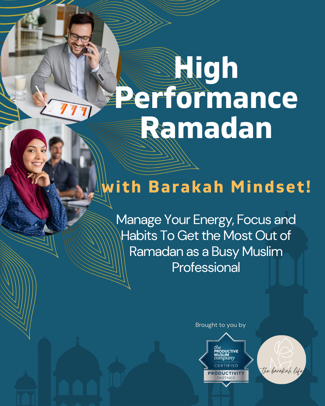 Join our complimentary webinar as we equip busy Muslim professional like yourself with simple steps to maintain high performance in your personal and professional life during this blessed month.